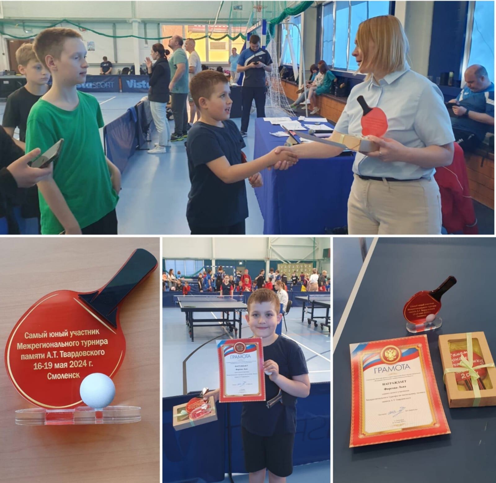 С 16- по 19 мая в г.Смоленск проходил Межрегиональный турнир по настольному теннису памяти А.Т.Твардовского, где активное участие принимали обучающиеся "СШОР "Олимп" под руководством тренеров-преподавателей Лилии Костеневич и Стефана Галузинского. По результатам турнира в восьмёрку сильнейших вошла Валерия Доронина. Александр Лукашенко и Андрей Артемьев среди мальчиков, успешно прошли отборочную квалификацию подгрупп и оказались в списках основного финала. Все теннисисты приобрели игровую и судейскую практику. Самый юный участник турнира Лев Фирсов был награжден памятным сувениром .